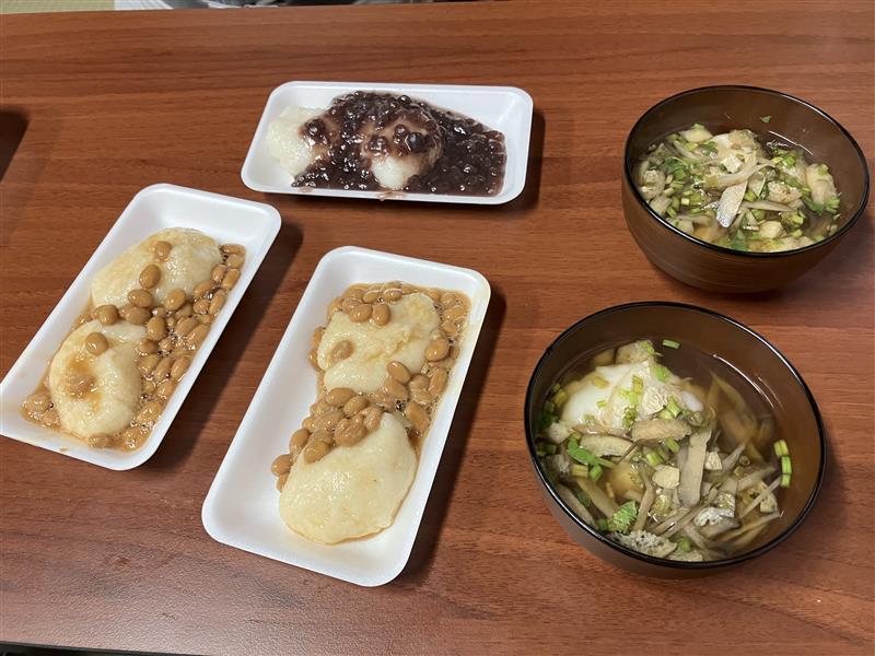 中へ入って受付を済ませて、あんこ餅、納豆餅、お雑煮をいただきました。