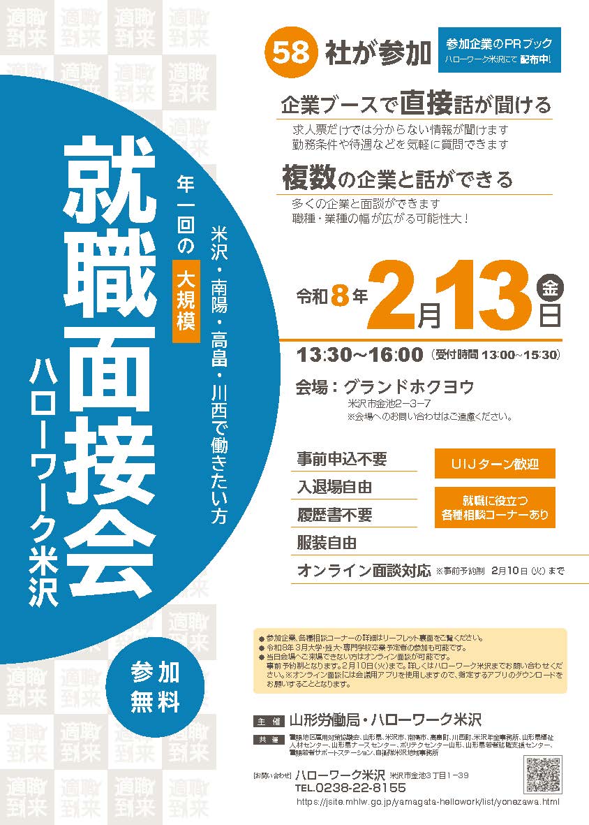 主催 山形労働局 ハローワーク米沢(お問い合わせ 0238-22-8155)